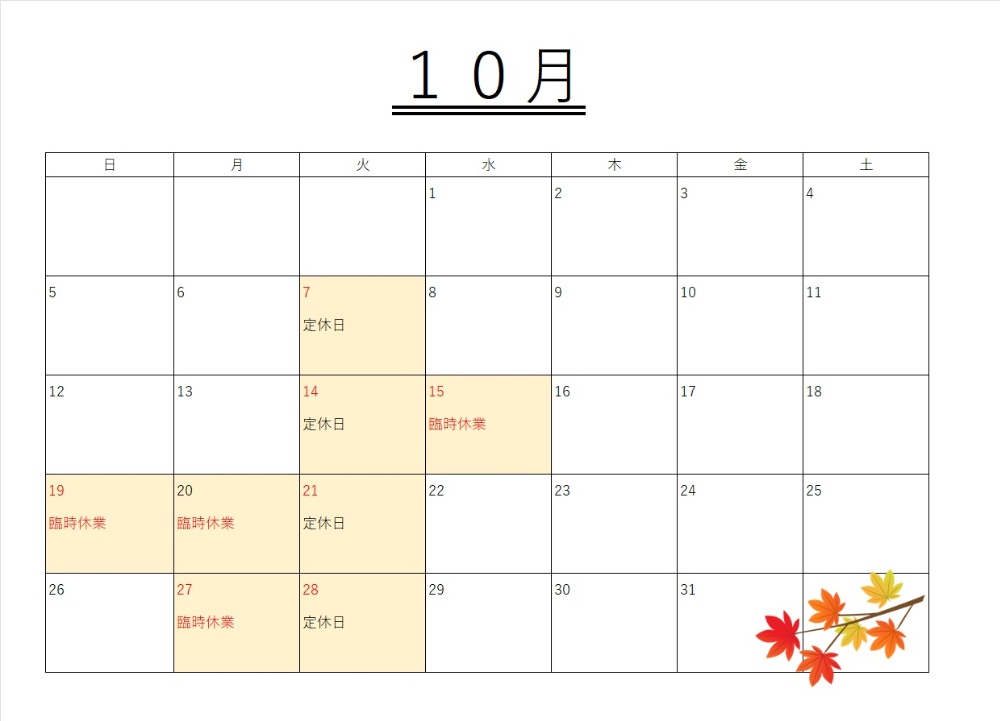 Open | 月 | 火 | 水 | 木 | 金 | 土 | 日 |